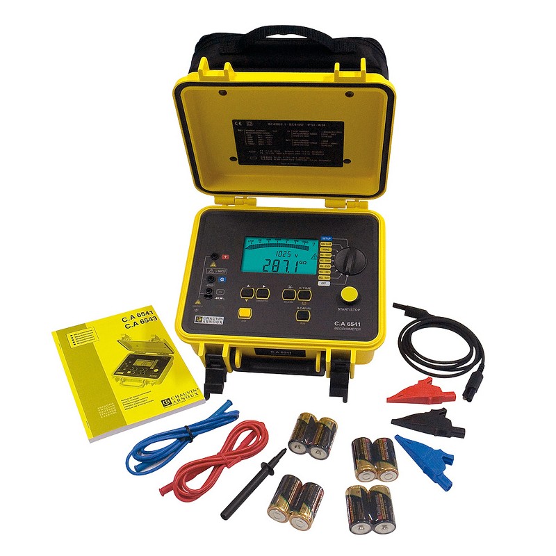 Rozsah dodávky:Měřič izolace C.A 6541, 2 ks měřicí vodiče 1,5 m, bezpečnostní vodič 1,5 m, měřicí hrot černý, 3 ks krokosvorka, brašna, 8 ks baterie 1,5 V a návod k obsluze v českém jazyce