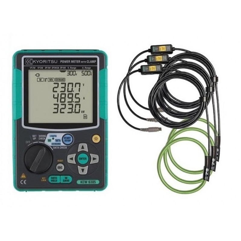 Digitální třífázový měřič výkonu s pružnými senzory Kyoritsu KEW 6305-03 je sofistikovaný analyzátor výkonu navržený pro komplexní monitorování elektrických systémů v reálném čase. Tento produkt je vybaven funkcemi, které umožňují měření a analýzu jedno- a třífázových systémů napětí, proudu, faktoru výkonu a četnosti měření.