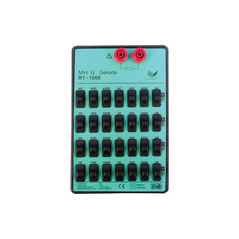 Odporové dekády řady R1-1000SAB s možností nastavení odporů v rozsahu od 1 ohm do 11,111Mohm a krokem 1 Ohm maji přesnost 1%, výkon 1W.