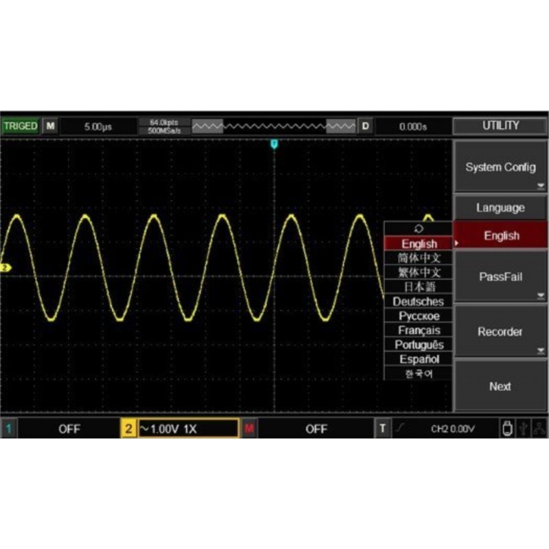 Osciloskop podporuje USB úložiště a díky funkci USB OTG si můžete naměřené hodnoty uložit na USB flash disk. Také podporuje komunikaci s PC pomocí funkce Plug and play USB.