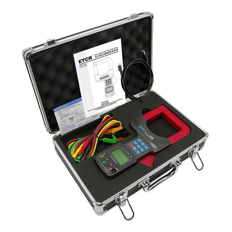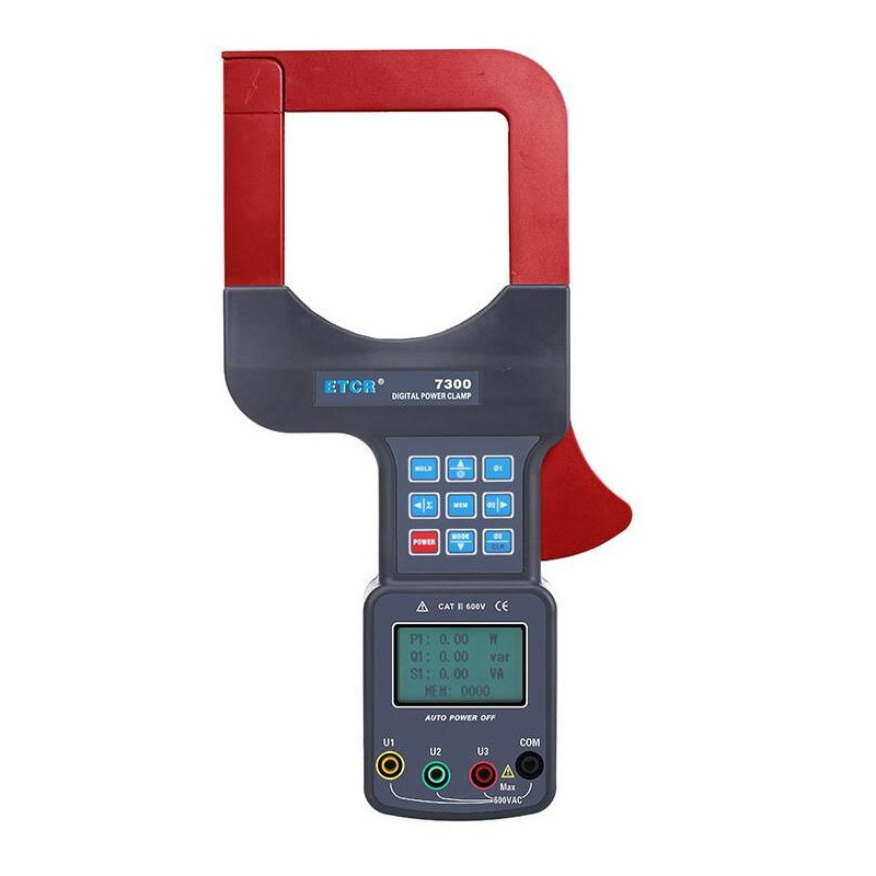 Velkoprůměrový tester unikajících proudů, napětí a výkonu. Měří střídavé proudy v rozsahu 0,01 mA až 1200 A. Maximální rozměr měřeného vodiče je 80×80 mm.