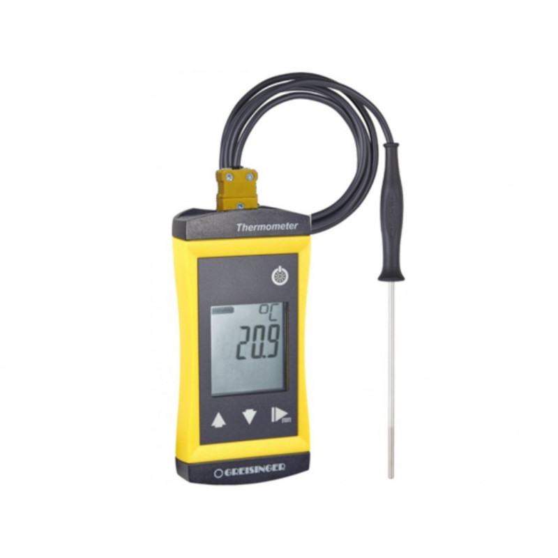 Digitální teploměr Greisinger G 1200-GF1T3-WPT3Vývoj nové řady přístrojů G 1200 byl úmyslně zaměřen na základní měřicí funkce těchto přístrojů. S cílem dosažení nejlepší přesnosti měření byl důraz kladen hlavně na přesnost měření srovnávacího konce termočlánku. I přes zachování všech technických vlastností (standardů) charakterizujících přístroje této třídy, bylo dosaženo velice příznivé ceny přístroje! Přesnost, rychlost a spolehlivost, koncentrované v kompaktním a vodotěsném pouzdře (s výjimkou zásuvky pro připojení snímače), činí z tohoto zařízení spolehlivého partnera profesionálů i náročných "hobby" uživatelů. Made in Germany. Díky prvotřídní kompenzaci termočlánku („virtuální bod mrazu“) s vysoce kvalitním měřením srovnávacího konce a propracovaným designem, dosáhnete v této třídě bezkonkurenční spolehlivosti měření.