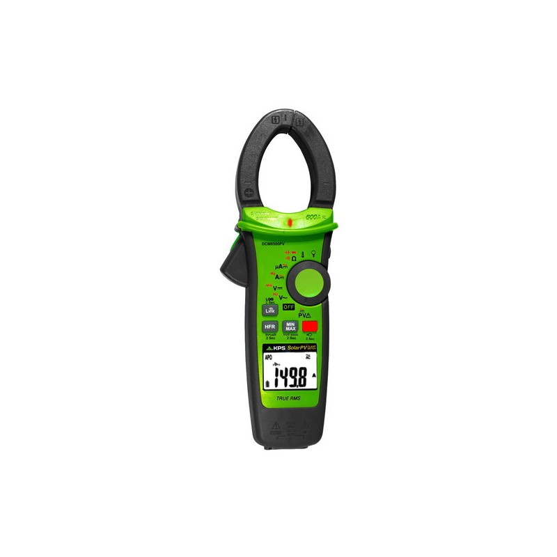True RMS klešťový multimetr pro solární aplikace. Měří proud do 600V ac/dc (3000A ac pomocí flexi snímače), napětí do 2000Vdc (pomocí speciálních měřicích kabelů), resp. do 1500Vac. Měří také odpor, kapacitu, frekvenci a teplotu. Je vybaven loggerem (4000 míst) a Bluetooth komunikací. Rozběhový proud (vzorkování 100msec), přímý vstup uA dc, LoZ (vstup s níže impedancí na potlačení indukovaných napětí), HFR (dolnopropustný filtr pro potlačení vyšších frekvencí), bezkontaktní indikace napětí, funkce MIN/MAX, REL, smart Data Hold, , automatické vypnutí.
