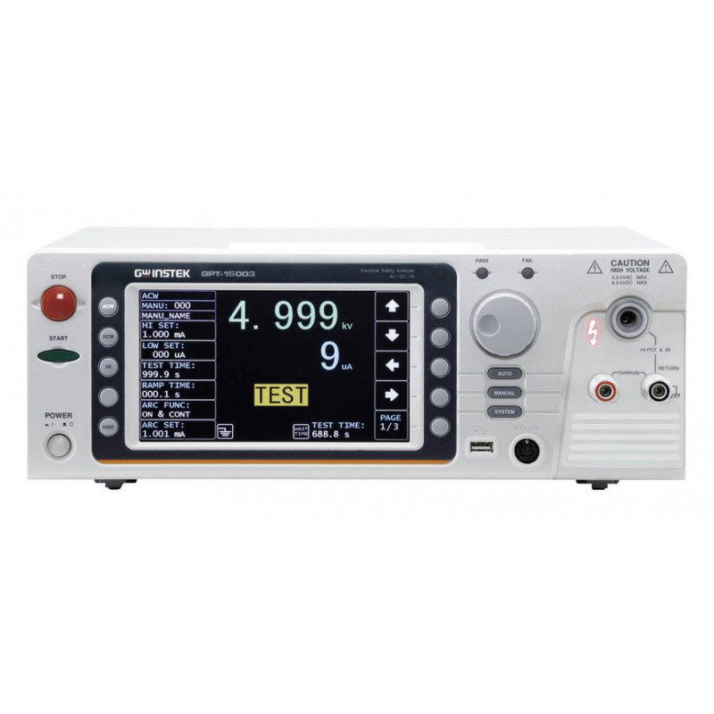 AC bezpečnostní analyzátor GW Instek GPT 15003GW Instek představuje model pro vlajkovou loď bezpečnostního analyzátoru - série GPT-15000, která jako první bezpečnostní analyzátor světa splňuje IEC 61010-2-034 (požadavky na elektrické měřicí, ovládací, regulační a laboratorní přístroje - zvláštní požadavky na měřicí přístroje pro izolační odpor a zkušební přístroje pro elektrickou pevnost), které jsou povinné: Aby bylo zajištěno, že uživatelé při používání zařízení obdrží potřebnou ochranu a varování, musí být splněny požadavky na softwarová a hardwarová rozhraní pro vývoj vysokonapěťových a izolačních přístrojů a přístrojů pro měření izolačního odporu.