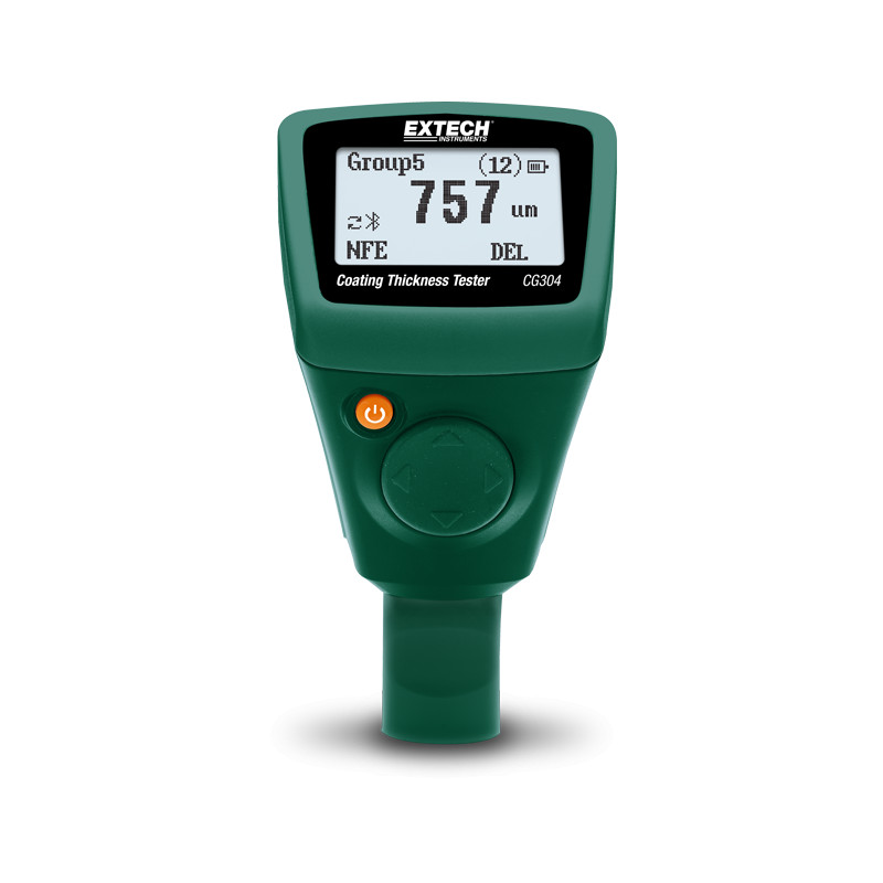 Extech CG304 je profesionální, nedestruktivní měřič tloušťky nátěrů vhodný pro železné (feromagnetické) i neželezné (neferomagnetické) podklady. Přístroj automaticky rozpoznává typ materiálu a pomocí technologie magnetické indukce nebo vířivých proudů měří tloušťku vrstvy. Naměřená data je možné bezdrátově přenášet do počítače přes Bluetooth® rozhraní pro další analýzu a vytváření protokolů.