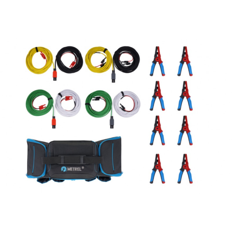 S 2126 – sada 8 zkušebních vodičů, 5 m, a 8 Kelvinových svorek s čelistí 35 mm, pro měření na výkonových transformátorech, baleno v měkké transportní tašce