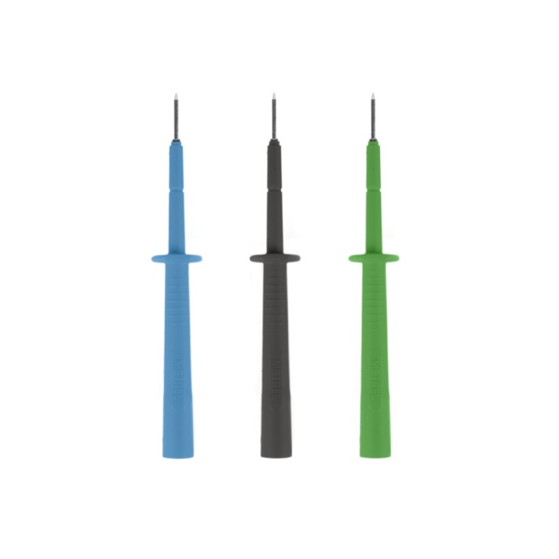 S 2143 – sada testovacích hrotů CAT II FI 2, 3 ks (černý, modrý, zelený), METREL, s průměrem hrotu 2 mm pro testovací otvory a obtížně přístupná měřicí místa