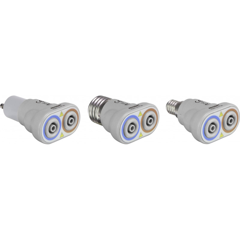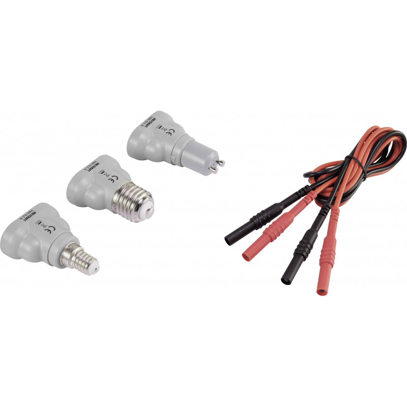 Tato sada měřicích adaptérů obsahuje 3 různé adaptéry pro žárovky určené k měření napětí a izolace. Měřicí adaptéry jsou vhodné pro patice E27, E14 a GU10.